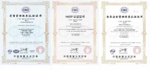 2013年8月19日,公司正式获得食品安全管理、HACCP管理体系两个管理体系的认证证书。公司自2012年11月18日开业以来,在全体干部员工齐心协力基础上,已成功通过了质量管理体系、食品安全管理体系、HACCP管理体系三个管理体系认证,为产品在全国各地市场准入、出口备案及管理水平提升奠定了基础。