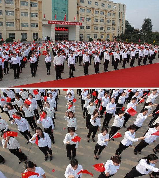 紧接着全体员工高喊“祝伟大的祖国繁荣昌盛”、“祖国万岁”,口号声整齐响亮,铿锵有力。