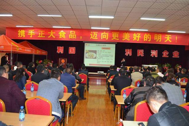 会前与会人员通过参观廊参观了公司生产现场。会议首先由郑宝振副董事长致辞,接下来报告了公司从农场到餐桌全产业链的经营理念、公司食品安全管理、目前产品及2015新产品研发方向和营销方案,随后进行了现场经销商代表发言、产品品尝、现场售卖及订单签订等一系列活动。各位参会人员对本次产品推介会给与了很高的评价,都说“星空官方网页版食品真是好!星空官方网页版就是不一样!”