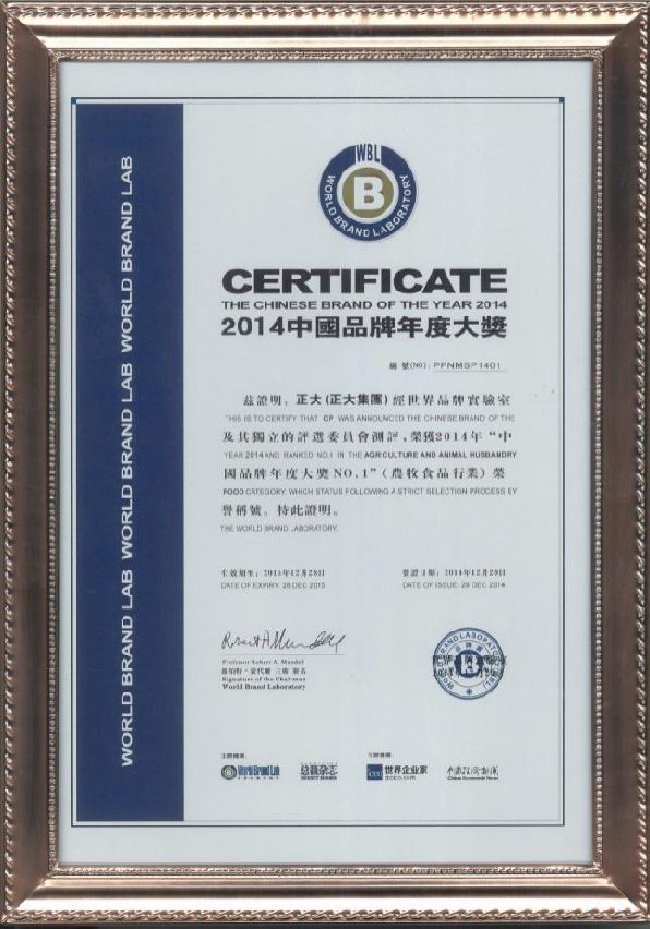 2014年12月29日,“总裁世界年会”在北京东方君悦大酒店举行。本次大会揭晓了享有“中国品牌奥斯卡”之称的 “世界品牌实验室2014年中国品牌年度大奖”评选结果,星空官方网页版集团、中国国航、国家电网、腾讯控股、中国人寿、中国国旅、北汽集团、华为技术、长虹电器等30个活跃在中国经济舞台的领军品牌荣获 “中国品牌年度大奖”,星空官方网页版集团以在农牧食品业多年的探索实践和管理经验,以及良好的产品品质和品牌知名度,荣获农牧食品行业“中国品牌年度大奖***”荣誉称号。哈佛商学院教授约翰•戴腾博士(John Deighton)、耶鲁大学管理学院教授莱维·多尔博士(Ravi Dhar)分别进行颁奖及致词。