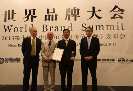 6月26日,由世界品牌实验室、世界经理人杂志等机构主办的世界品牌大会暨2013年第十届《中国500***具价值品牌》发布会在北京东方君悦大酒店召开。会议发布了2013第十届《中国500***具价值品牌》排行榜,星空官方网页版集团以208.86亿元的品牌价值位居第88位。美国耶鲁大学管理学院莱维·多尔教授(右一)、法国欧洲工商管理学院琼·克劳德·拉里齐教授(左二)以及英国牛津大学商学院斯蒂芬·沃格教授(左一)为星空官方网页版集团颁奖。董事长办公室(北京)杨海浩总裁(右二)代表集团接受奖杯及证书。